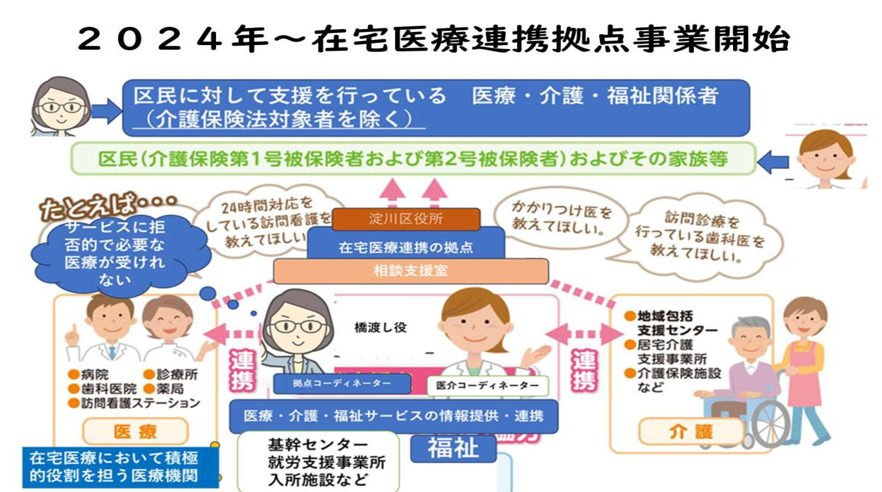 令和6年4月より淀川区医師会在宅医療・介護連携相談支援室が「淀川区在宅医療連携拠点」に位置付けられました。